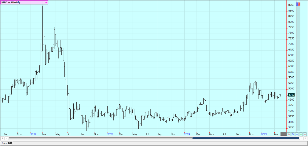 Palm Oil and Vegetable Oils: Palm Oil futures were lower last week in reaction to the Trump tariffs announcement mage Wednesday afternoon that proved bigger than expected. There is talk of reduced supplies in the market due to extreme weather that caused fields to flood among other things. Demand was improved in March and was weaker than expected for February. Chart trends are mixed. Canola was mixed yesterday as traders reacted to the announcement of the new Trump tariffs on Canadian goods and others in the world. Canadian goods were exempted from the new round of tariffs but still must deal with the tariffs previously imposed by the US.