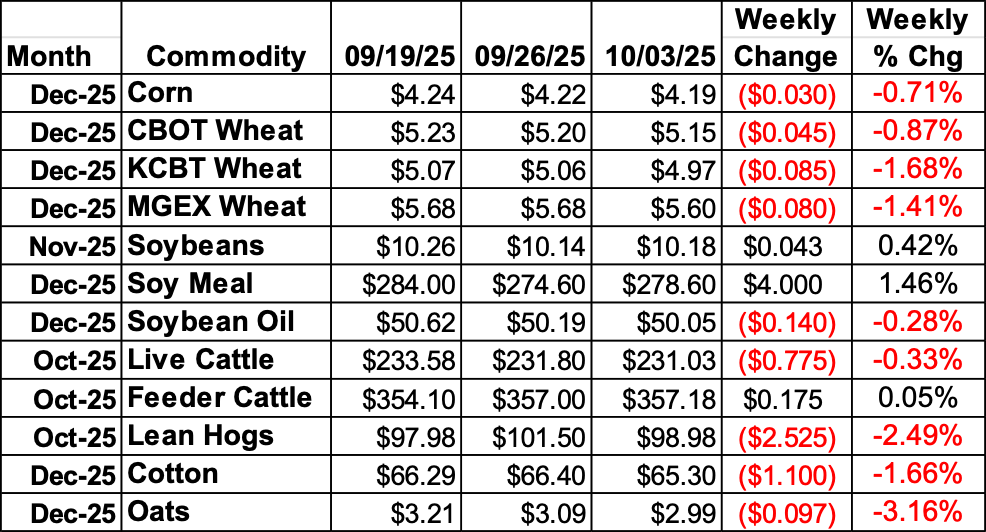 Short and Sweet. Ag Marketing Report 10/06/2025