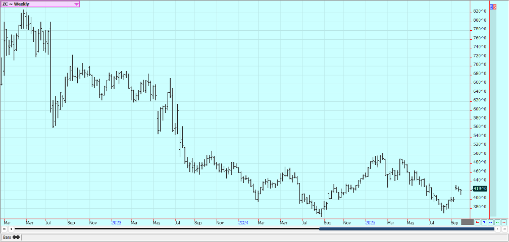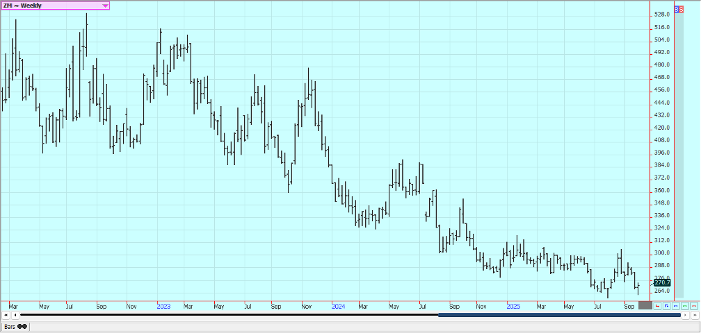 Corn: Corn was a little lower last week, with selling seen on Friday before what could be a big harvest weekend. It looks like a short term short covering rally was under way during the second half of the week but it ran out of steam on Friday. USDA discovered larger than expected September stocks on Tuesday and as the coming harvest has outweighed strong demand ideas until now. The crop is maturing and the harvest is expanding. There are ideas that US production might not be super strong due to disease such as rust to offset the demand losses. Temperatures should average near to below normal this week and there are forecasts for scattered showers. Most of the western Midwest has seen adequate or greater precipitation and production ideas are high. Areas east of the Mississippi River have been very dry for the last month or more. Demand for Corn in world markets remains moderate to strong. Oats were lower.