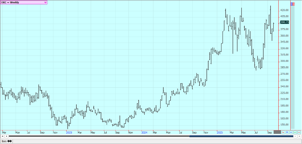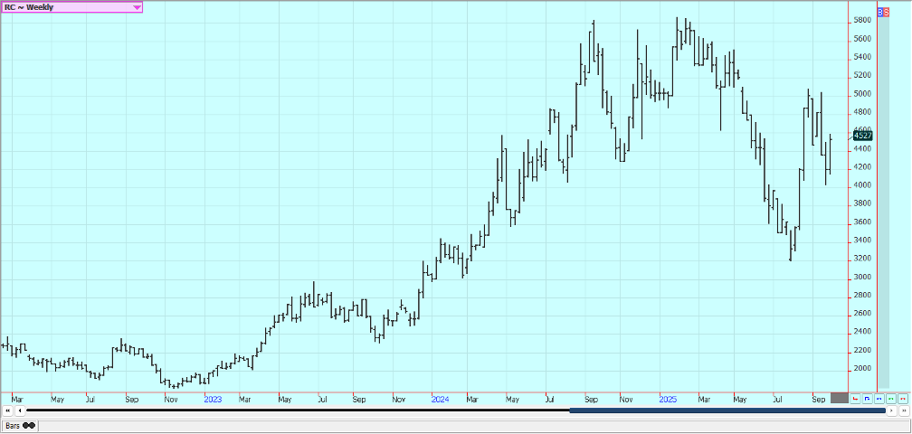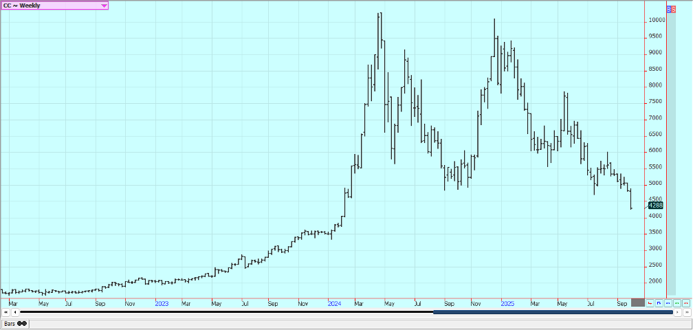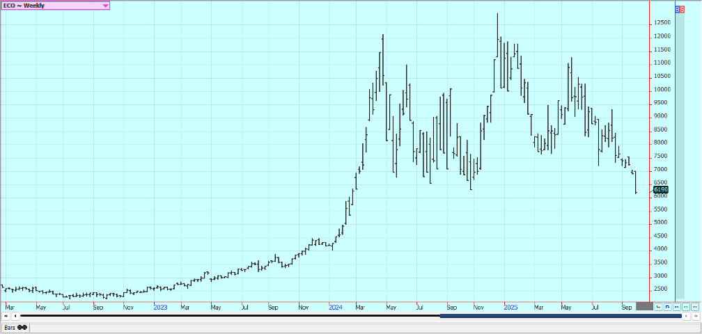 Cocoa: Both markets closed lower and trends are down on the charts as demand concerns in West Africa continue. Both markets made new contract lows last week. Bigger supplies are expected at West Africa ports soon as Ivory Coast has raised the farmgate price paid to farmers and they are expected to sell. Ghana has also raised farmgate prices. US demand has been weakening due to the increased prices inside the US from the Trump tariffs and world demand is thought to be weaker due to higher prices. There are still reports of increased production potential in other countries outside of West Africa, including Asia and Central America. The market feels that there is less demand and less production from Ivory Coast and Ghana and the lack of demand is expected to continue. Ecuador is expected to become the second largest producer of Cocoa, replacing Ghana on the list.