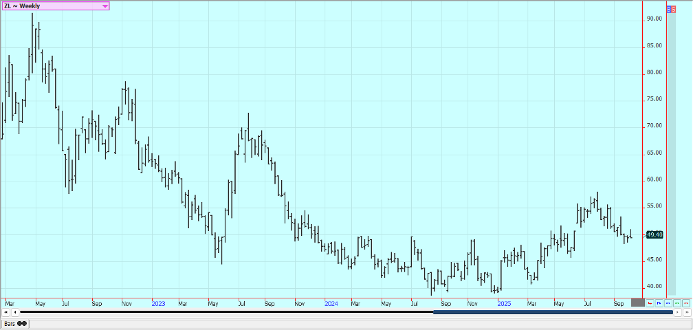 Cotton: Cotton was higher last week in sideways trading and as the US government has continued to be shut down. The US Dolar remains high to hurt upside potential and demand ideas. There are no more USDA reports coming due to the closure. The US harvest has started in most areas and initial yield reports are positive. There are still ideas that growing conditions are generally good. There are still reports of good weather in Texas and into the southeast with warm temperatures and a few showers and demand concerns caused by the tariff wars are still around. Bolls are opening and there is mostly no rain except for a few showers. The monsoon in India is good and a good production there is possible.