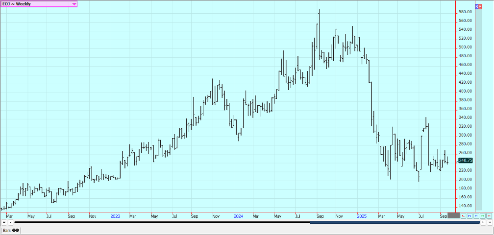 Coffee: New York and London were both lower last week. Ideas are that a Trump-Lula meeting could happen at the ASEAN summit in late October but nothing has been confirmed. Reports indicated that the weather in Brazil will improve. Dry conditions have been reported in Coffee production areas lately and rains are expected to return over the next couple of weeks. There are still reduced deliverable supplies for both exchanges, but the lack of deliverable stocks in both markets has supported the futures market. Vietnam has seen mostly good growing conditions but too much rain from some tropical systems has been reported in some areas.