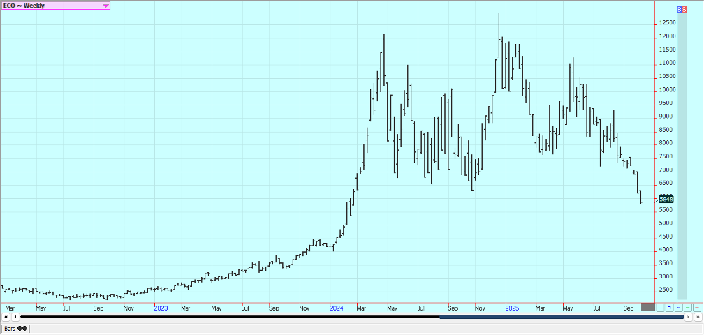 Cocoa: Both markets closed lower last week and New York closed at new lows for the move on Friday. Demand concerns in West Africa continue. Bigger supplies are expected at West Africa ports soon as Ivory Coast has raised the farmgate price paid to farmers and they are expected to sell. Ghana has also raised farmgate prices. There are still reports of increased production potential in other countries outside of West Africa, including Asia and Central America. The market feels that there is less demand and the lack of demand is expected to continue.