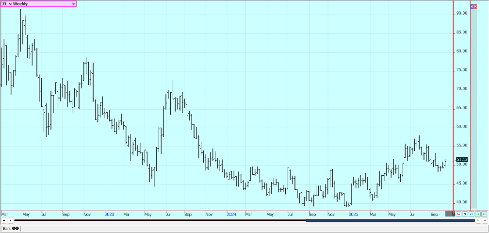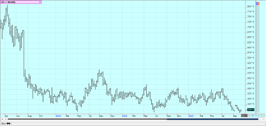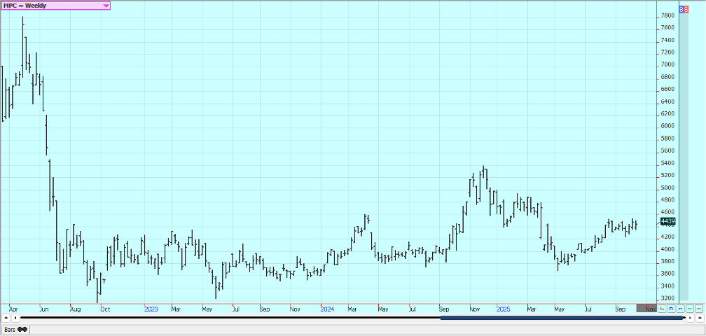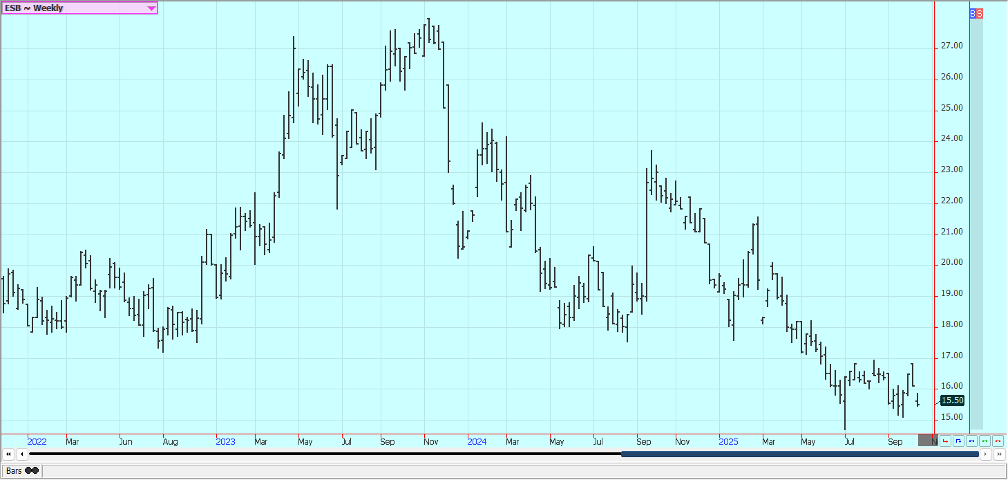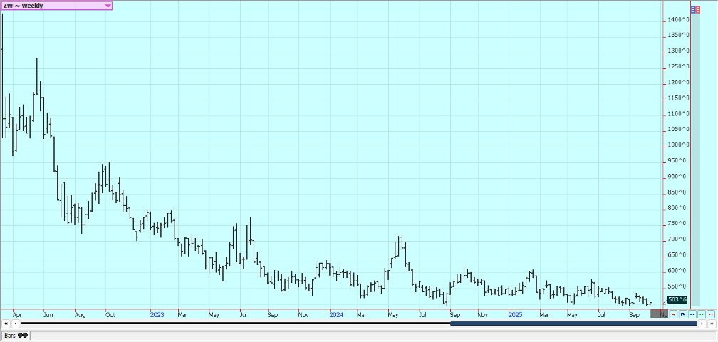 Sugar: New York and London were lower last week. Trends are still turning down in both markets. Ideas of good supplies for the market from good growing conditions for cane and beets around the world continue. Production in Center-South Brazil has also been strong. Sugar production in Center-South Brazil was stronger-than-expected during the second half of September, rising 10.8% to 3.14 millipon tons. The outlook for cane crops in India and Thailand are in good condition with reports of good rains this year, while Brazilian cane continue to favor producing sugar over ethanol. The prospect of a global surplus in the 2025/26 season was keeping the market on the defensive with a rise in production in India and Thailand set to increased supplies while global consumption is expected to remain steady. France’s farm ministry on Tuesday forecast sugar beet output in 2025 at 34.2 million metric tons, up from 31.8 million expected last month. This would be 5% above the 2024 harvest and 10% above the five-year average despite a fall in planted area.