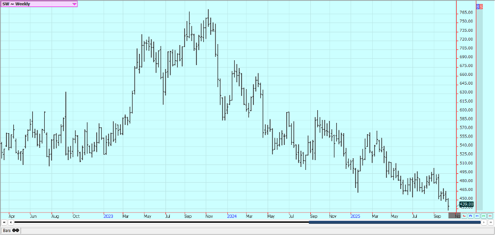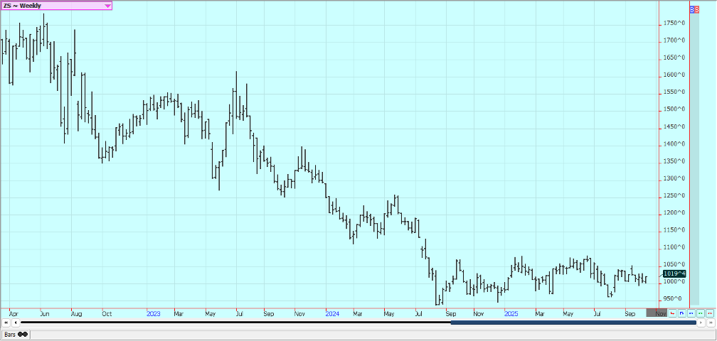 Wheat: Wheat closed higher last week on speculative buying and despite reports of weaker prices paid in Russia and Argentina. No USDA reports were released due to the government shutdown. Russian crop areas remain too dry in Winter Wheat areas and too wet in Spring Wheat areas, but crop size ideas are expected to increase due to reports of big yields in Spring Wheat growing areas. A French government report showed plenty of production but lower quality. Rains have been good in the northern Great Plains and Canada. It has been warm in the Great Plains so far this Fall. Southern hemisphere crops appear to be good.