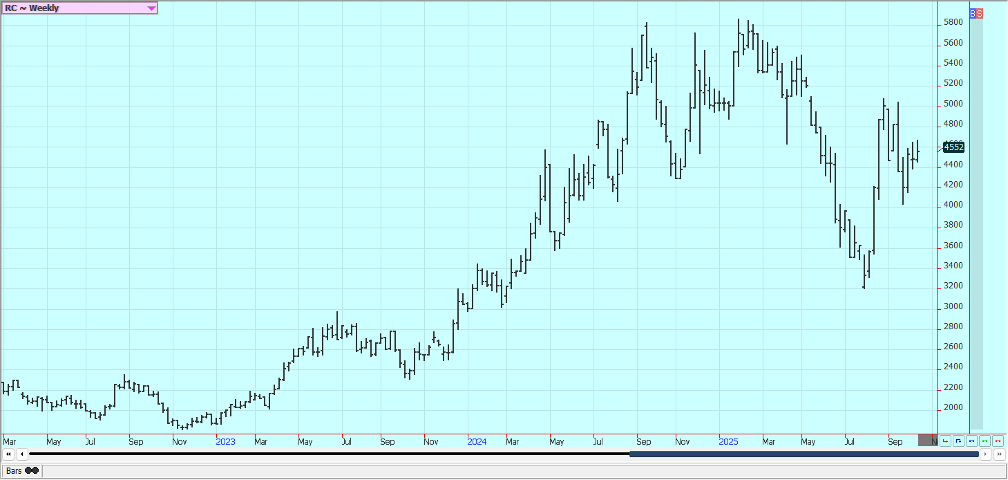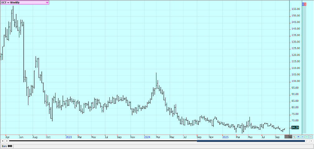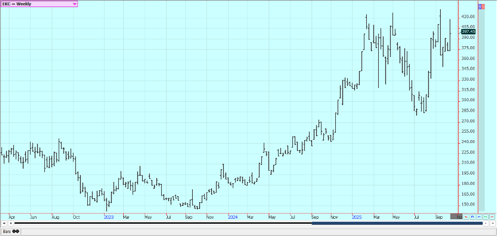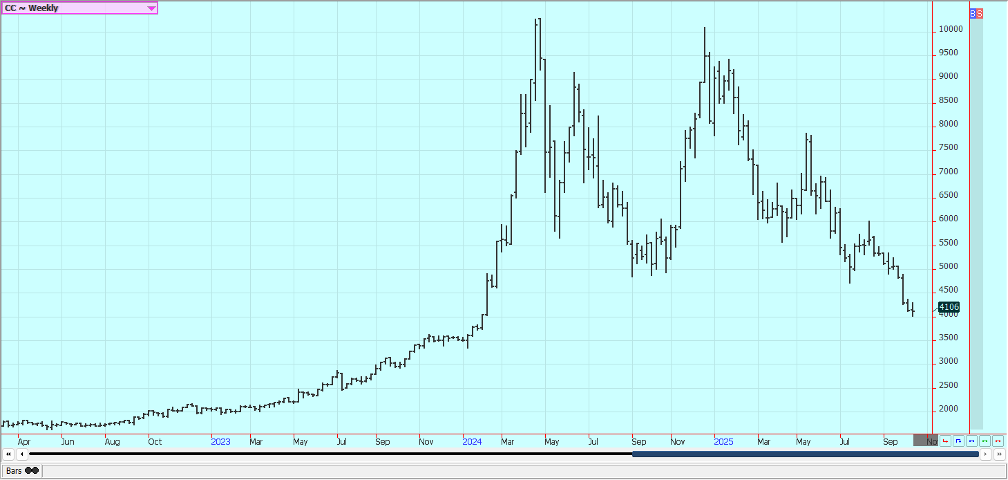 Cocoa: New York closed a little lower and London closed a little higher last week. Demand concerns in West Africa continue. Bigger supplies are expected at West Africa ports soon as Ivory Coast has raised the farmgate price paid to farmers and they are expected to sell. Ghana has also raised farmgate prices. There are still reports of increased production potential in other countries outside of West Africa, including Asia and Central America. The market feels that there is less demand and the lack of demand is expected to continue. Cocoa arrivals at ports in Ivory Coast were down 52% between October 1 and October 12 against last year. GEPEX industry data published earlier showed the September cocoa grind in Ivory Coast, which vies with the Netherlands as the world’s top grinder, fell 38.6% year-on-year. The total 2024/25 season cocoa grind fell 9.9% year-on-year. Europe’s third-quarter cocoa grind fell 4.8% from a year earlier to 337,353 metric tons. The reduction was less than the trade expected. Asia’s third-quarter cocoa grind fell 17% versus a year ago, while the North American third-quarter cocoa grind rose 3.2%. cocoa purchases in Ivory Coast have stalled as a record farmgate price and poor-quality stocks keep buyers and exporters away.