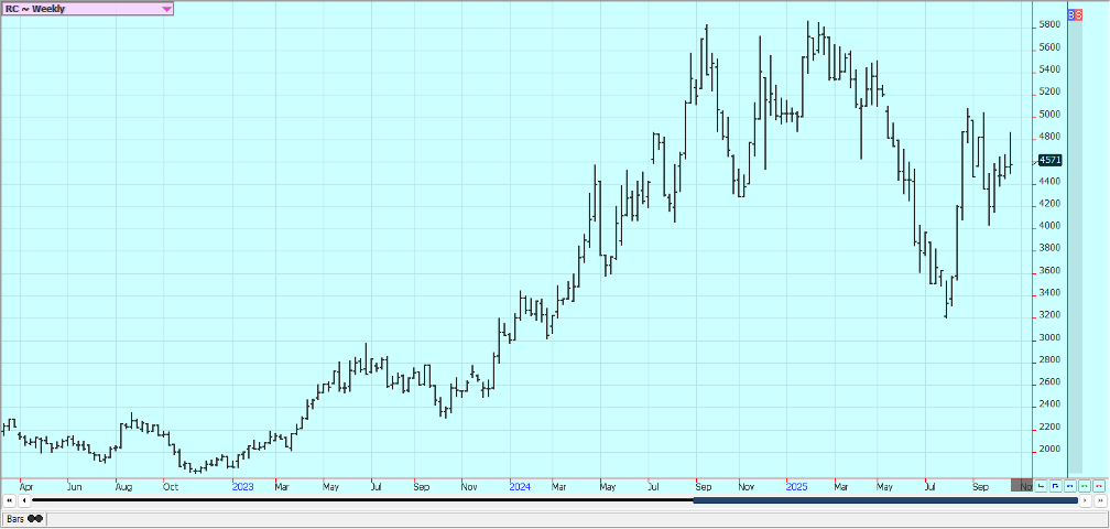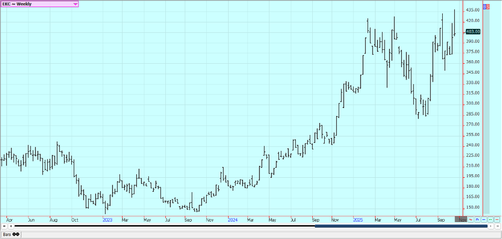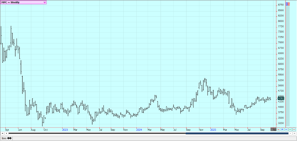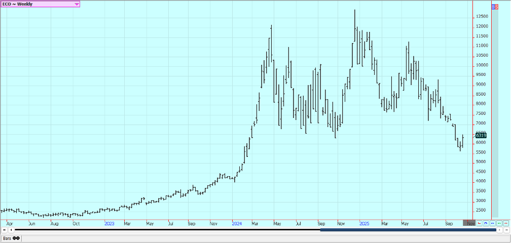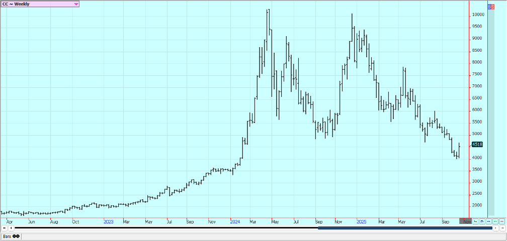 Cocoa:  New York and London closed higher last week and trends turned up.  London December was mostly lower.  Demand concerns in West Africa continue.  Bigger supplies are expected at West Africa ports soon as Ivory Coast has raised the farmgate price paid to farmers and they are expected to sell.  Ghana has also raised farmgate prices.  There are still reports of increased production potential in other countries outside of West Africa, including Asia and Central America.  The market feels that there is less demand and the lack of demand is expected to continue.  Cocoa arrivals at ports in Ivory Coast were down 52% between October 1 and October 12 against last year.