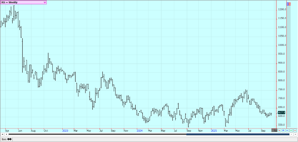 Rice:  Rice was lower once again last week.  The selling has been to be relentless and appears tied to the weaker prices in Asia and especially India.  Trends are down in the market.  The harvest is wrapping up in Texas and southern Louisiana.  Harvest is now wrapping up in Mississippi and Arkansas.  California is also about done with its harvest.  Yields and quality are mixed, but quality appears better than a year ago.  The cash market has been slow with low bids from buyers in domestic markets and average or less export demand.