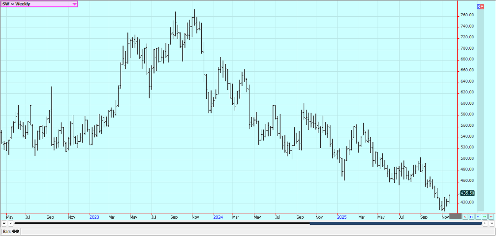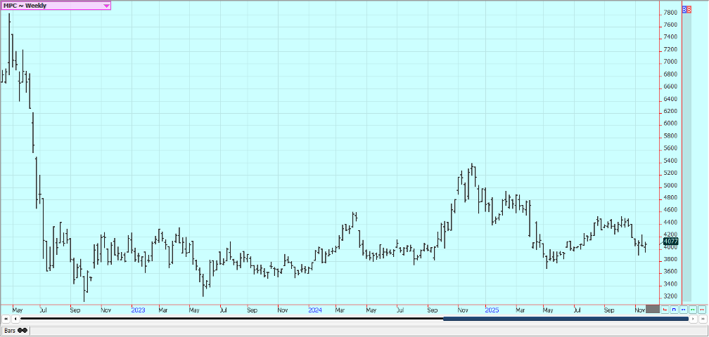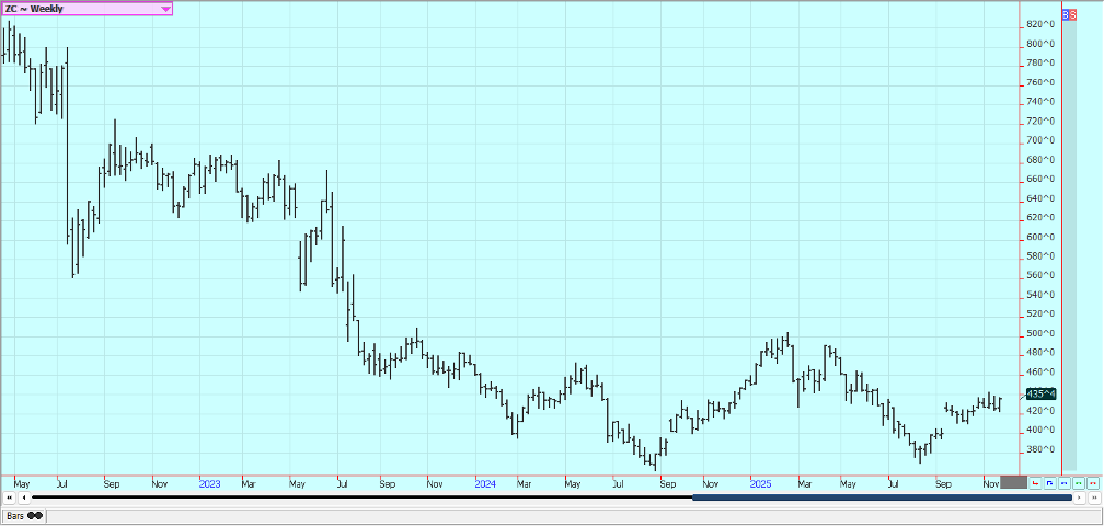 Wheat:  Wheat closed a little higher in Chicago and KC last week.  The weekly charts show that trends are in a short term range.  World prices turned weaker last week due to reports of strong production in exporter countries.  Production has been good in northern hemisphere countries.  Southern hemisphere crops appear to be very good.  Demand has been weaker for various origins including Russia.