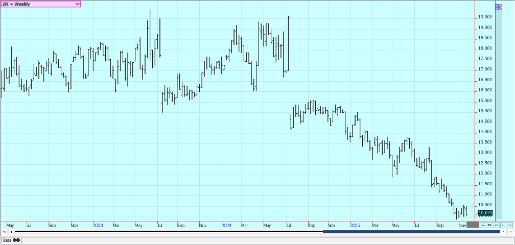Rice:  Rice was lower last week as the selling in this market continues unabated.  Ideas are that the market is too cheap and that farmers have sold what needs to be sold for now.  The recent selling has been to be relentless and appears tied to the weaker prices in Asia and especially India.  Trends are down in the market.  The harvest is over in the delta and Mid South.  California is about done with its harvest.  Yields and quality are mixed, but quality appears better than a year ago.  The cash market has been slow with low bids from buyers in domestic markets and average or less export demand.  The charts show that futures are in a short term trading range.