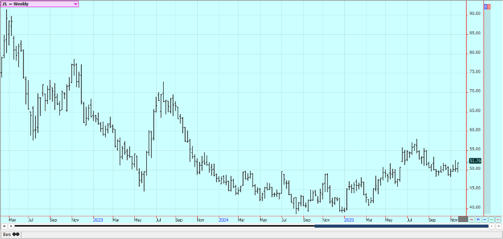 Palm Oil and Vegetable Oils:  Palm Oil futures were a little higher last week despite fears of increasing production and weakening demand.  There are still Indonesian plans to increase the use of Palm Oil in biofuels blends.  There are still ideas of increasing production.  The market sentiment overall is turning bearish on ideas of increasing stocks to the market and on some concerns about demand   Canola was higher and moved back into the heart of the recent trading range on the daily charts.  Trends are still mixed on the daily charts but up on the weekly charts.