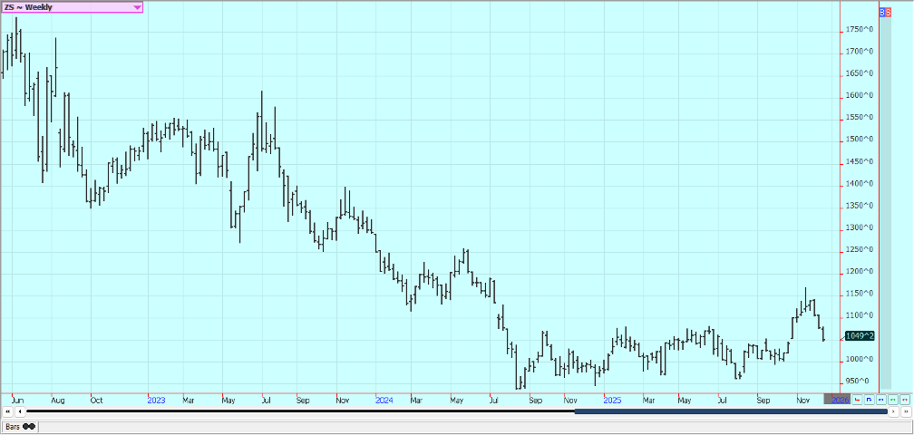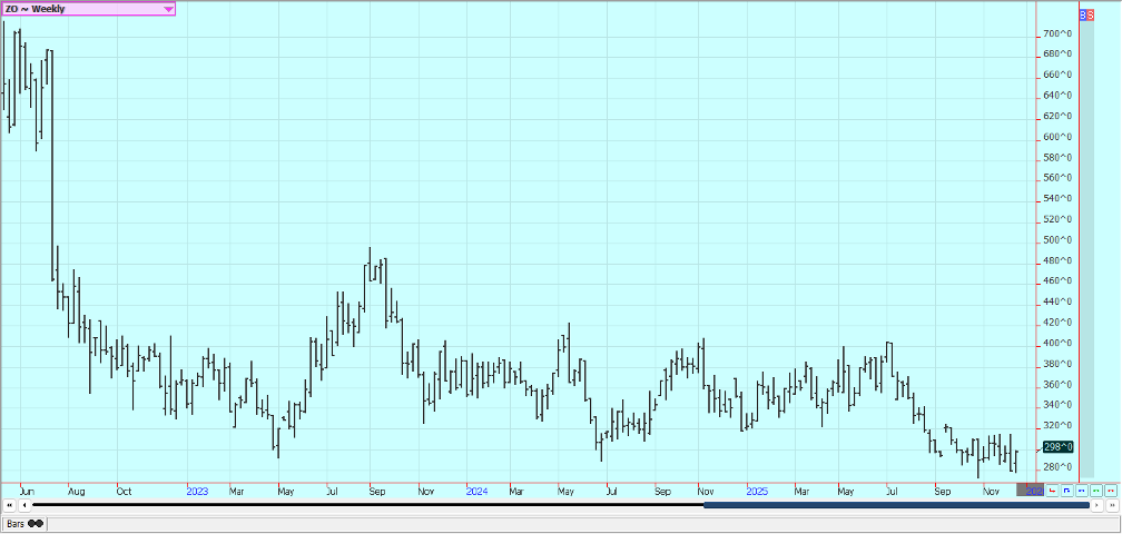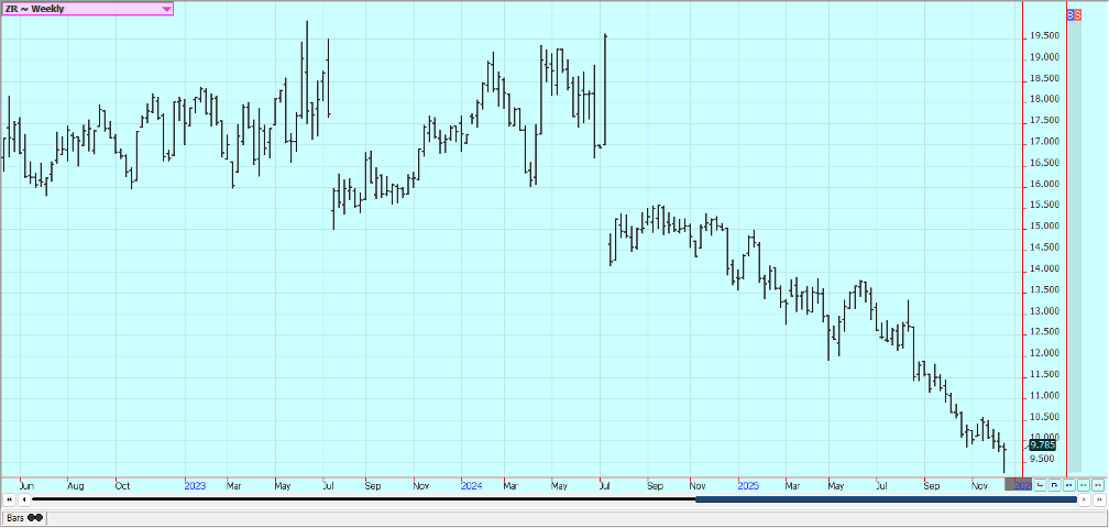 Rice: Rice was a little lower last week, but rallied from new lows for the move later in the week on ideas that futures were oversold. Ideas are that the market is too cheap and that farmers have sold what needs to be sold for now. The recent selling has been to be relentless and appears tied to the weaker prices in Asia and especially India. Trends are mixed in the market. The harvest is over in the delta and Mid South. California is about done with its harvest. Yields and quality are mixed, but quality appears better than a year ago. The cash market has been slow with low bids from buyers in domestic markets and average or less export demand. The charts show that trends are down.