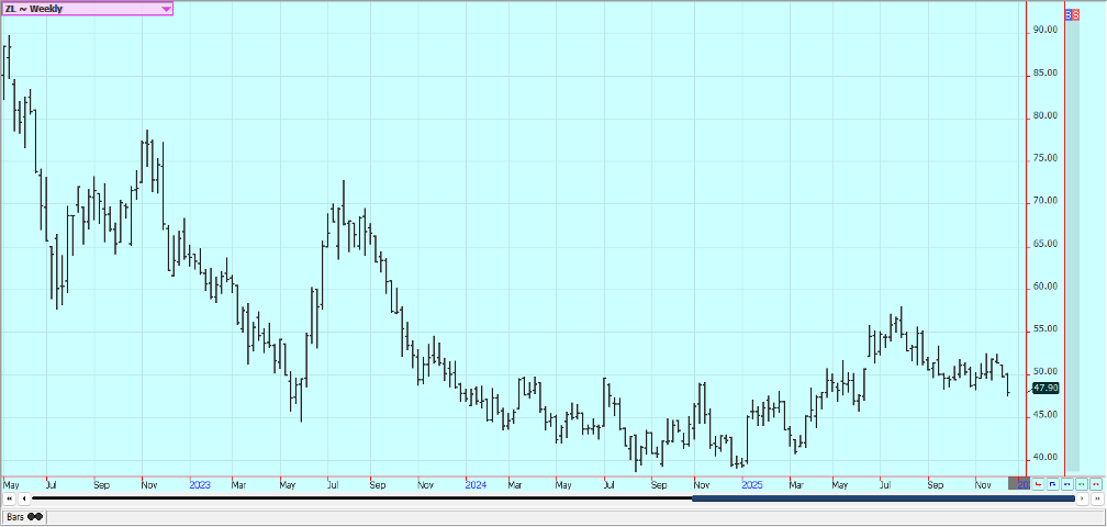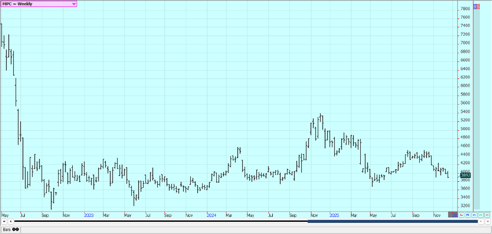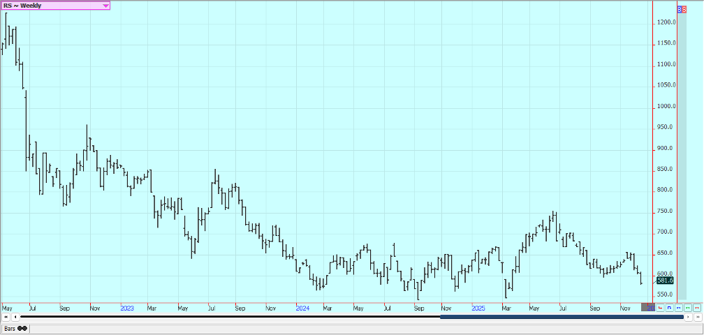 Palm Oil and Vegetable Oils: Palm Oil futures were lower last week on ideas of increasing supplies available to the market. There are still Indonesian plans to increase the use of Palm Oil in biofuels blends. There are still ideas of increasing production. The market sentiment overall is turning bearish on ideas of increasing stocks to the market and some concerns about demand Canola was lower along with the price action in Chicago. There are ideas of a big Soybeans harvest coming from South America. Trends are down on the daily and weekly charts.