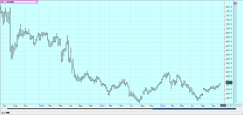 Corn: Corn was higher last week in holiday trading as the demand for export and for bio energy needs holds strong. Trends are turning up. There have been ideas that traders expect weaker demand news from now on but demand overall has been very strong and above USDA projections until now. Ideas are that export demand is less now due to increased competition in the world market and ethanol demand is less as well. Reports indicate that many elevators are holding less Corn than expected. Temperatures should average below normal this week. Oats were higher.