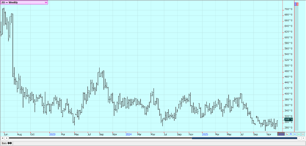 Rice: Rice was little changed last week. Futures faded from resistance near 1000 before the holiday. Ideas that futures were oversold. Ideas are that the market is too cheap and that farmers have sold what needs to be sold for now. The recent selling has been to be relentless and appears tied to the weaker prices in Asia and especially India. Trends are mixed in the market. The harvest is over in the delta and Mid South. California is about done with its harvest. Yields and quality are mixed, but quality appears better than a year ago. The cash market has been slow with low bids from buyers in domestic markets and average or less export demand. The daily charts show that trends are mixed.
