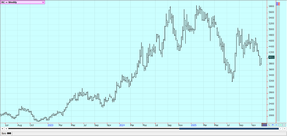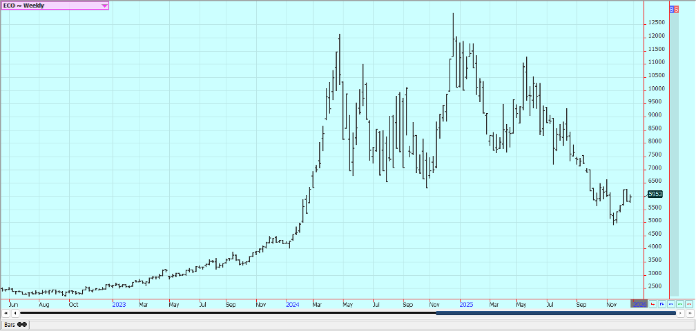 Coffee: New York and London were higher last week, and trends are mixed in New York on the daily charts and are now mixed on the daily report in London. There are still ideas and reports of increasing harvest sales from Vietnam. There are reports of very good conditions in Brazil that has caused some farm selling in recent days. Scattered showers are being reported now to improve tree condition in Brazil. Mexico is in good condition, as is Central America. Vietnam has scattered showers lately and conditions there are called good. Vietnamese producers are selling.