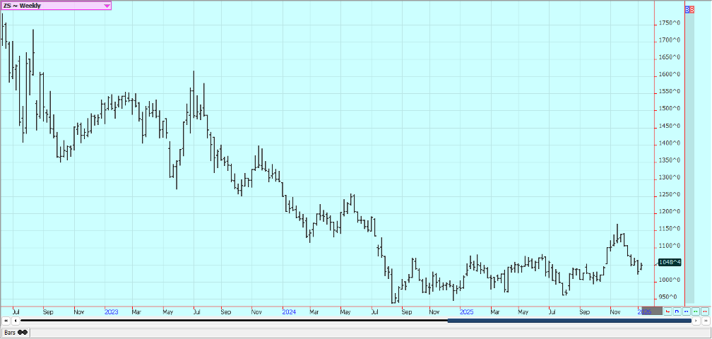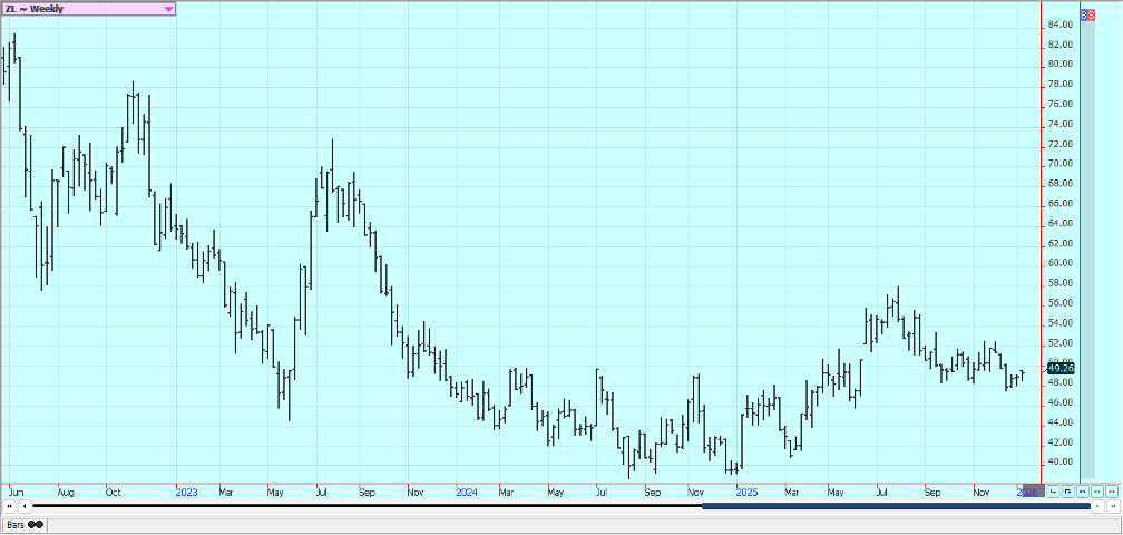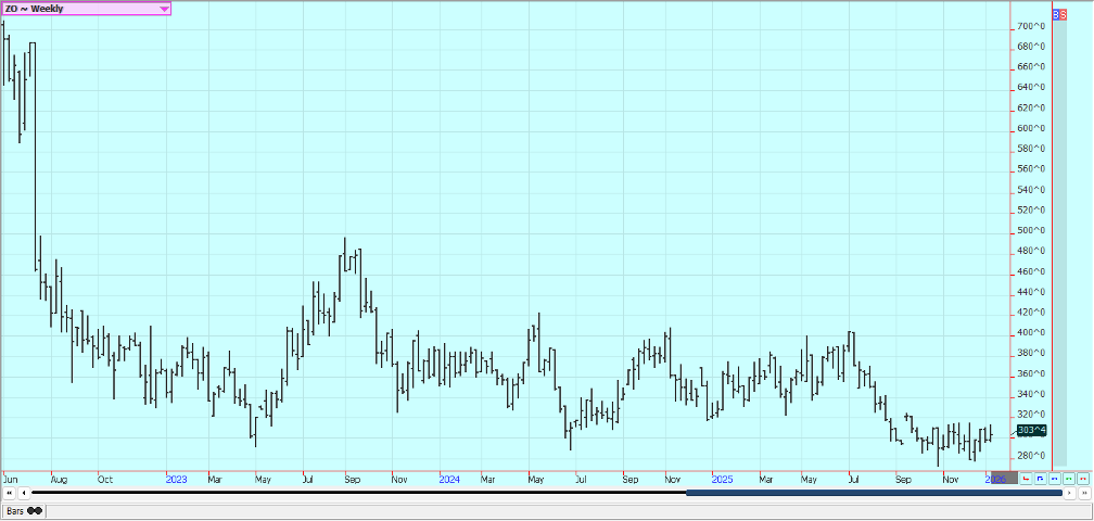 Rice: Rice was higher last week and might have finished a bottom formation on the daily and weekly charts. The recent selling appears tied to the weaker prices in Asia and especially India. Weaker world prices are expected by the FAO in the coming year. Trends are mixed in the market. Yields and quality in the US are mixed, but quality appears better than a year ago. The cash market has been slow with low bids from buyers in domestic markets and average or less export demand.