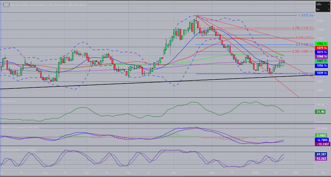 This last week has been a rough one in the Schroeder house. I’ll spare all the details but let’s just say my daughter is the early front runner for the 2026 Favorite Child Award for being the only one to make the puke bucket. We have been through the gauntlet of sick kids, and the frigid temps have kept us locked inside, driving my insanity to the next level. But we can all hope the end is in sight! The same can be said about some of the ag markets. Each have been through gauntlets of their own, and some are still running through it. Corn is dealing with an oversupply, beans have been through the export drought, wheat is, well wheat just can’t catch a break. Cattle had the risk off event from October, and cotton can seem to get out of its lull.