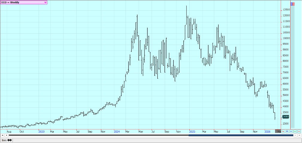 Cocoa:   New York and London closed lower last week on speculative selling.  Some producer selling in Ivory Coast was also noted.  Short term trends are down in both markets and Ghana announced it was cutting the farmgate price paid to farmers in an effort to increase sales.  A big main crop harvest has arrived in West Africa and rains have been positive for the next crop.  There are still reports of increased production potential in other countries outside of West Africa, including Asia and Central America.  The market feels that there is less demand due to the high prices seen last year and the lack of demand is expected to continue.  Weak demand has led to a build-up on unsold supplies in both Ivory Coast and Ghana, while the prospect of another global surplus in 2026/27 are real.  Cocoa demand has fallen sharply after prices nearly tripled in 2024, prompting chocolate makers to reformulate ingredients and shrink the size of their bars.