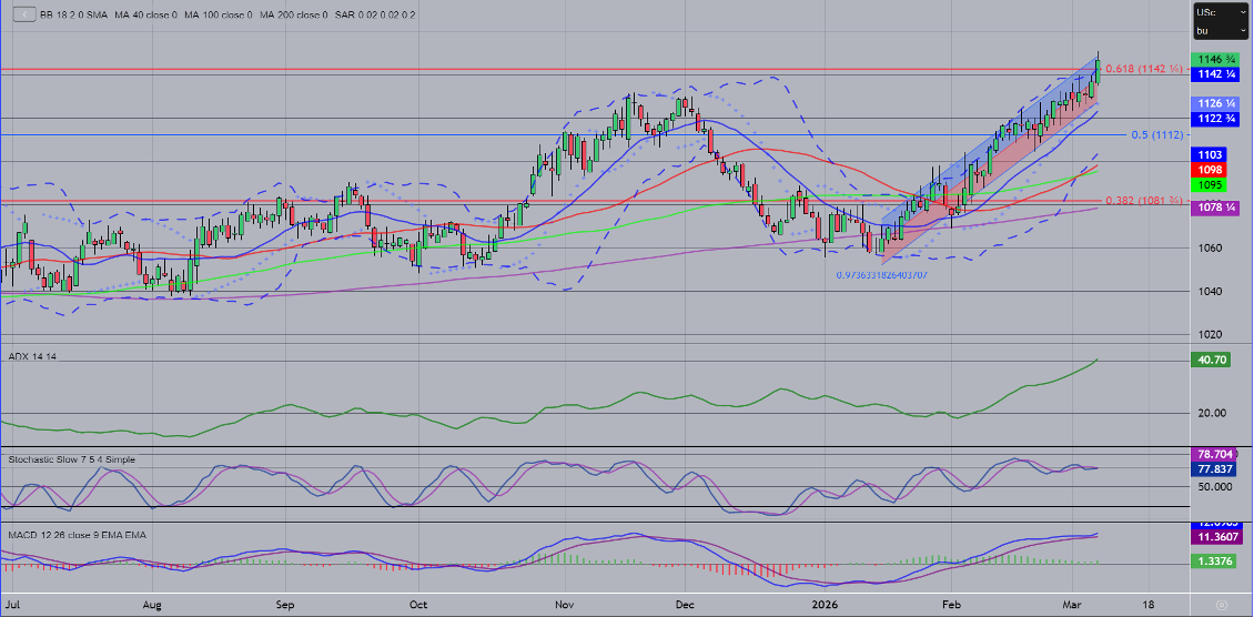 The markets as a whole, from ags, to energy, and even equities have had a wild past week. After the US and Israel strikes on Iran last weekend extended through this week, there have been several implications, mainly on the energy market. Still given the fact our world is built off oil, there has been an impact across a wide swath of the economy. The market has rewarded the energy markets, from crude to natural gas, diesel and gasoline all seeing sharp rallies. That is where the ‘risk on’ is happening, as the war risk enters the equation with the Strait of Hormuz effectively shut down and world oil stocks tighten. That has spilled over to the grains, as there comes a broader commodity buying factor/inflation risk if the conflict continues. Commodities are generally a good place to park money in those times. On the contrary, the ‘risk off’ is coming in the equities, as inflation concerns lead to a possibility that the Fed could revert recent rate cuts. That has been a slight pressure point for the livestock. As the famous saying in The Karate Kid goes, “Wax on, wax off. Don’t forget to breathe, very important.” Just remember, don’t forget to breathe!