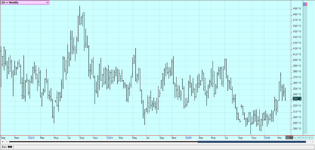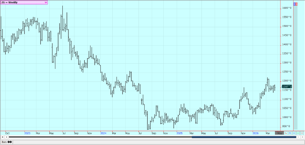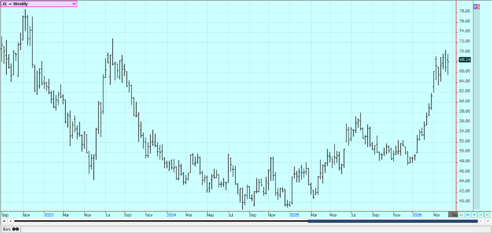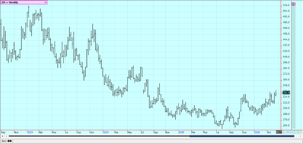 Soybeans and Soybean Meal: Soybean closed a little higher and Soybean Oil was higher and Soybean Meal was unchanged last week as the weather is too wet for planting in the US. The US government apparently has no idea on how to manage risks in the Hormuz or how to end the war. Big South American crops are being harvested, and ideas are that Chinese buying could be interrupted due to the Iran war and new import rules imposed by China. South American sources said that the Brazil crops are now more than 65% harvested. The tariff wars between the US and other countries add to cost of US Soybeans. Temperatures will be generally warm in the Midwest for the next week.
