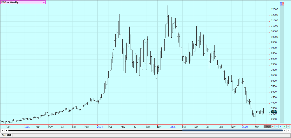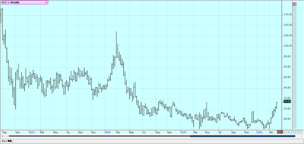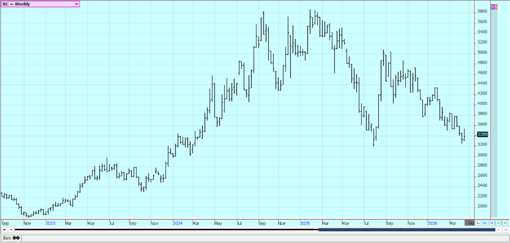 Coffee: New York and London were both lower last week. The next crop is developing in South America and Asia. There are still ideas of good supplies available on the farm, but getting Coffee from the farm to the market is another problem due to the war with Iran. Brazil said exports might not improve that much in March due to shipping costs and concerns. There are reports of very good conditions in Brazil and a large crop is forecast. World production conditions are generally good. Scattered showers are being reported now to improve tree condition in Brazil. Mexico is in good condition, as is Central America. Vietnam has had scattered showers and conditions there are called good.