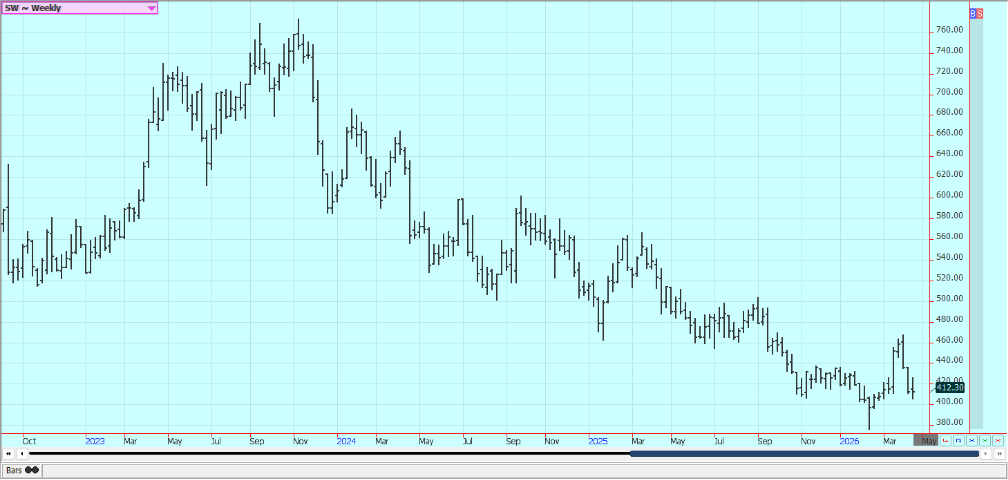 Wheat: Wheat closed higher in both markets last week with KC leading the way as rains failed to fall in the western Great Plains over the weekend but more chances for rains appeared in the forecasts for later this week. The forecasts call for some rain in the next week or so but not in amounts more coverage that would save the crop. Conditions are too dry in much of the US Great Plains and too wet in the US Midwest and in western Europe for best production and quality potential. Expected rain systems this week in the Great Plains could bring relief to crops produced there. The weather is now featuring precipitation is forecast for parts of the Midwest along with variable temperatures.